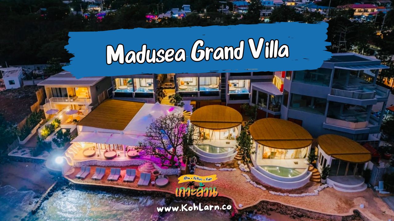 Madusea Grand Villa วิลล่าหรูเปิดใหม่ บนเกาะล้าน ที่จะทำให้ทุกการพักผ่อนของคุณพิเศษกว่าที่เคย! ซ่อนตัวอยู่ท่ามกลางธรรมชาติและวิวทะเลแบบพาโนรามา ติดหาดส่วนตัวที่เงียบสงบ พร้อมสิ่งอำนวยความสะดวกทันสมัยครบครัน