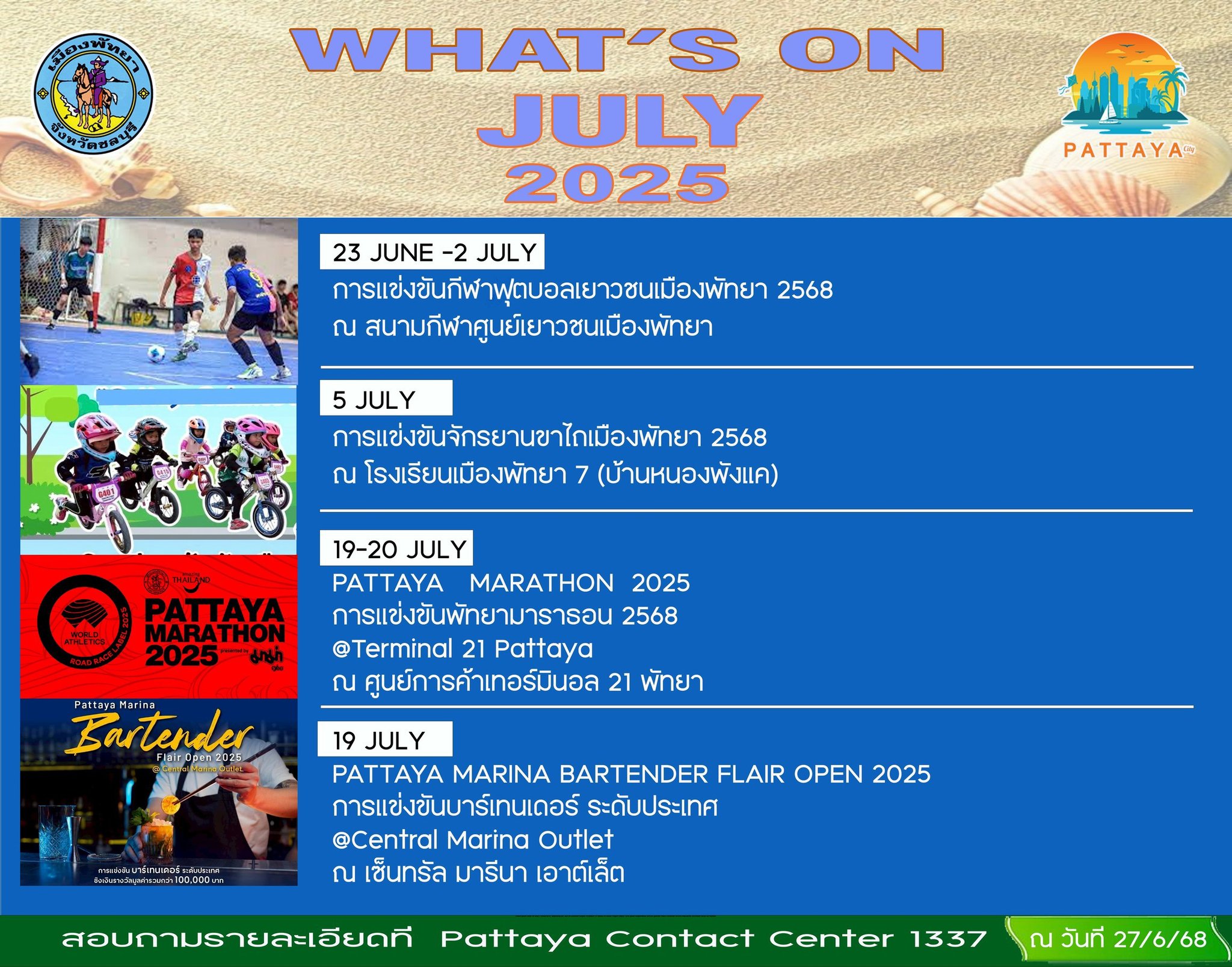 “กิจกรรมเมืองพัทยา เดือนกรกฎาคม 2568”